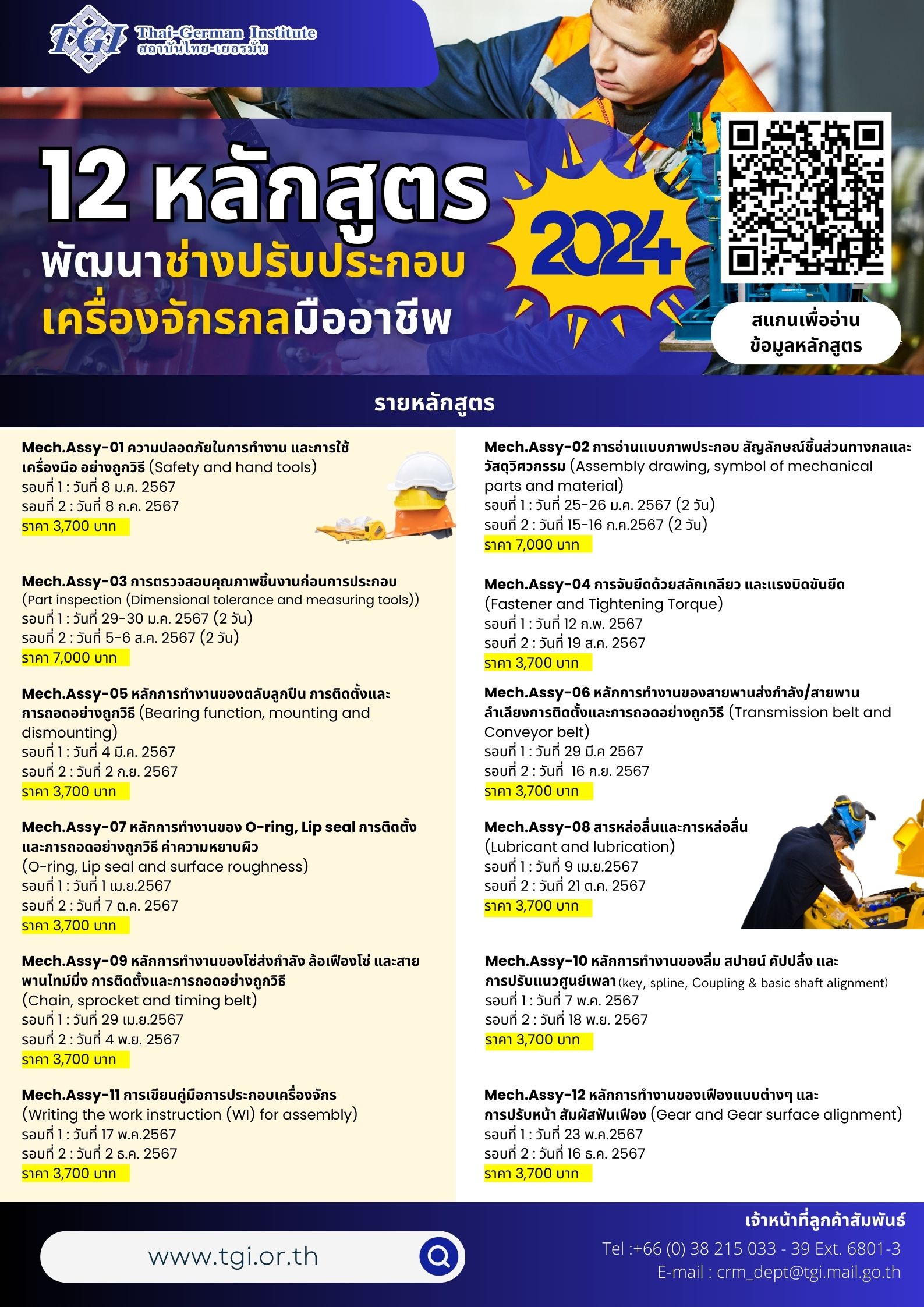 12 หลักสูตรพัฒนาช่างปรับประกอบเครื่องจักรกลมืออาชีพ 2024